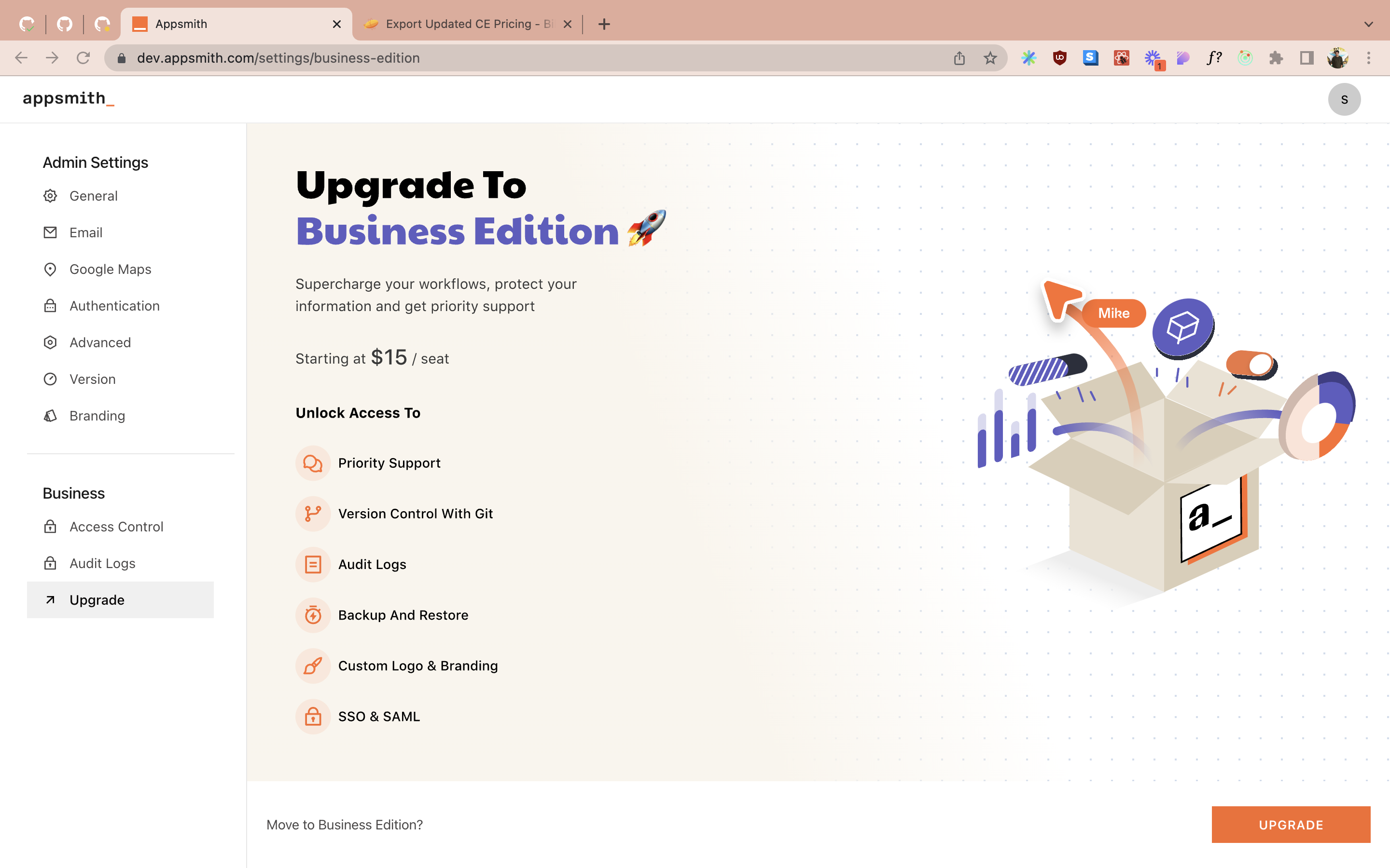 Updates the redirection link when the user clicks on `Upgrade`. Also