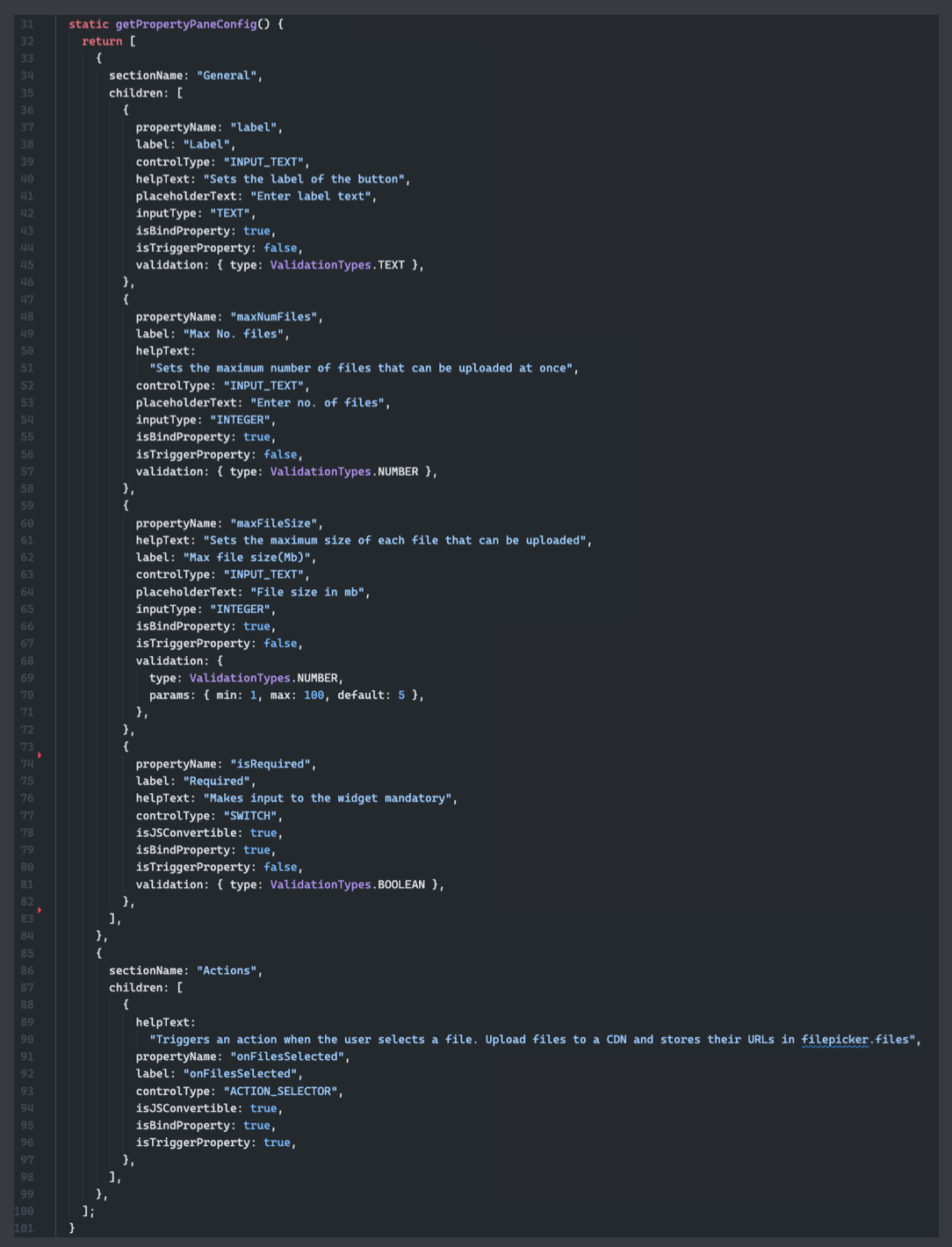 • Widget developers can decide which properties and events are exposed to Appsmith developers via the Appsmith platform.