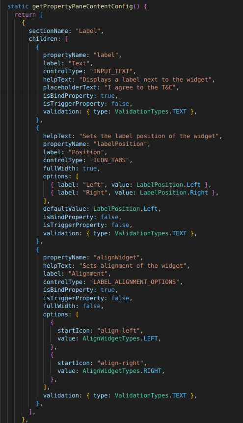 • Some widgets like the Table Widget, which have complex derived properties use a separate file for the derived property functions. parseDerivedProperties.ts helps load the functions from the associated derived.js as strings to use in binding the derived properties.