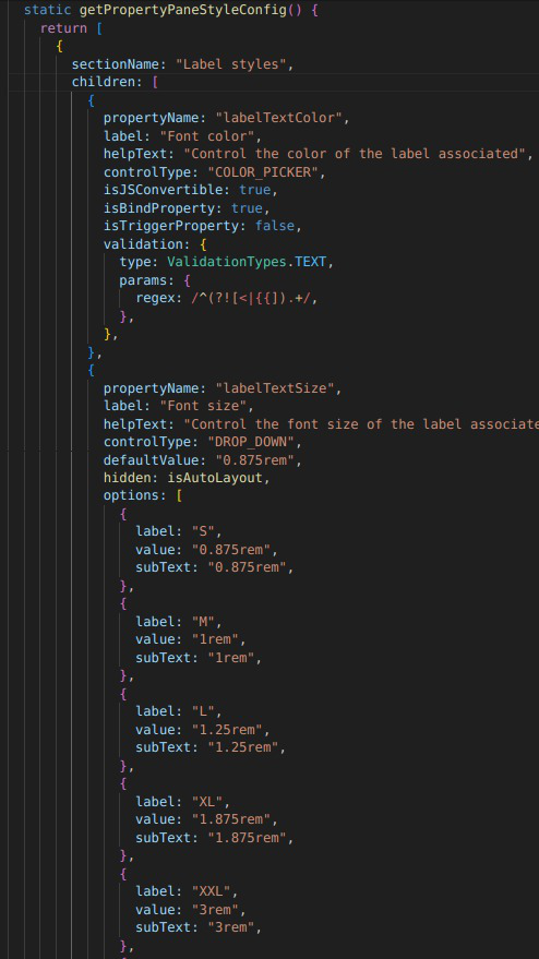 • propertyValue (any): The new value of the property the Appsmith developer is trying to apply. - The return value should be an array of objects or undefined. The keys of the object are described below.