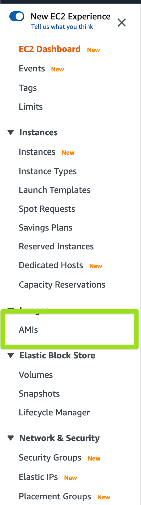 • From the Amazon EC2 dashboard, select the “AMIs” option in the “Images” menu.