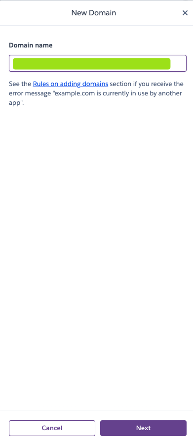 • Input your domain name & click Next. Heroku will provide you a DNS Target that you can map your domain with Add domain form Finish