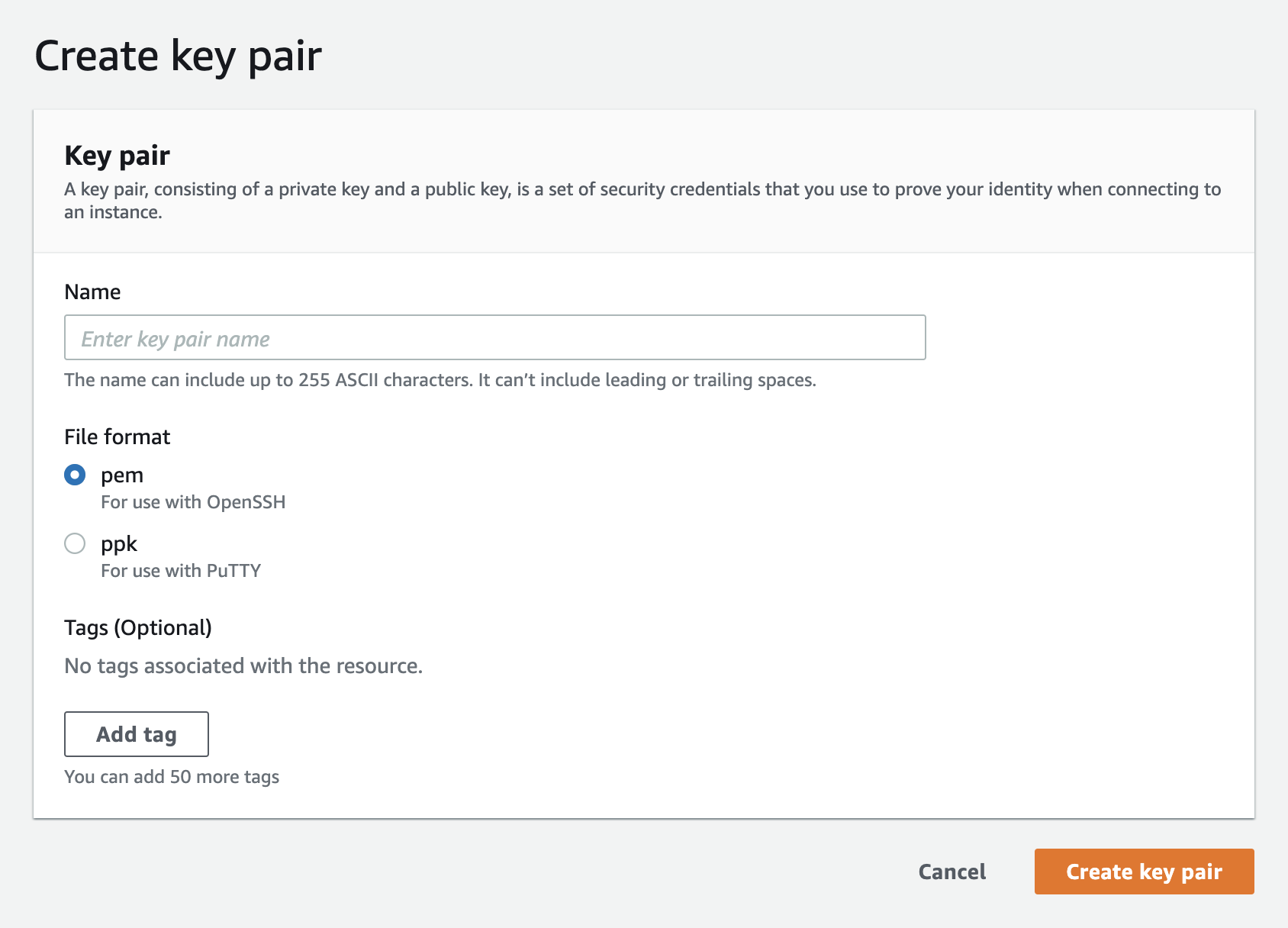 To generate an SSH key pair, which you will need to log in to your EC2 instances, follow the steps below: