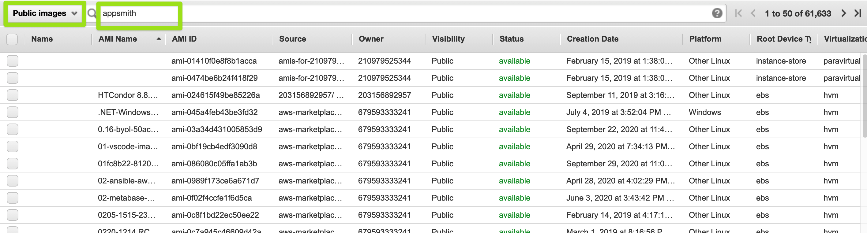 • Search for the Appsmith Stack by entering the search term “appsmith” in the search bar at the top. Search AMI
