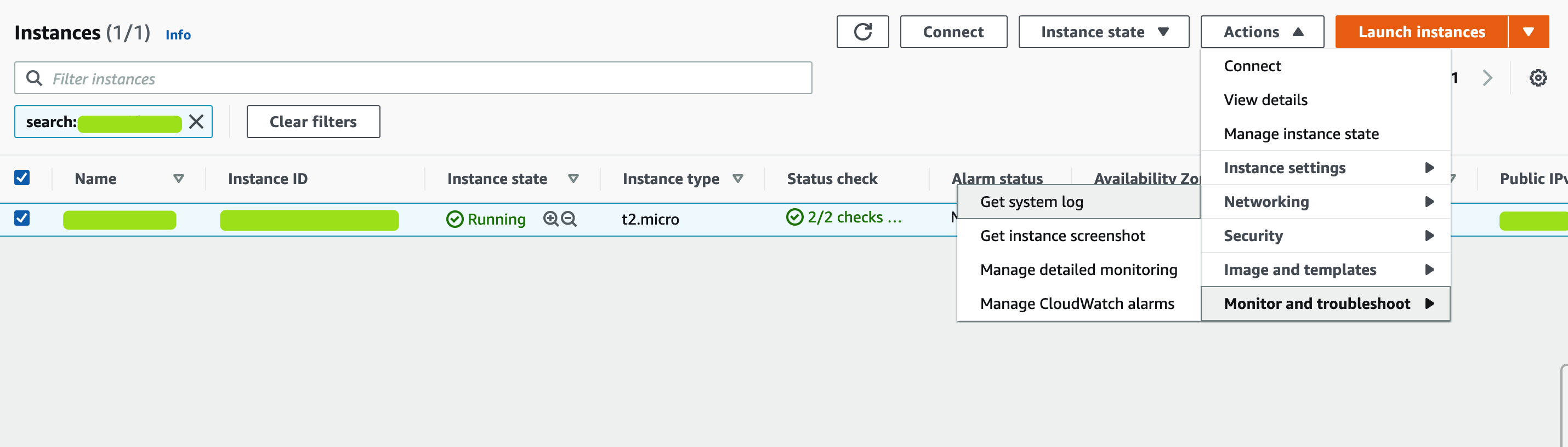 • Select the instance
